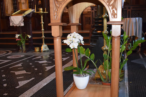 Udsnit fra kirken med levende blomster